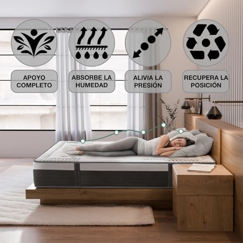 Matnature Zerobact Sac | Colchón Viscoelástico | Muelles Ensacados | Firmeza Alta y Adaptabilidad Premium | Altura 30 cm | Antideslizante y Antibacteriano ()