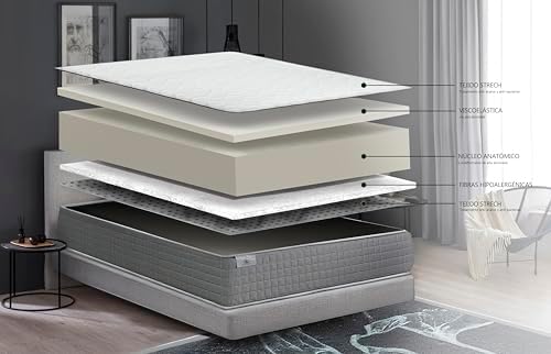 Colchón Visco Cool | Altura 28 cm | Fabricado en España | Desenfundable y Lavable | Firmeza Media | Alta Densidad | Transpirable y Anatómico | Tratamiento Sanitized CertiPUR | Colchones 135 x 190