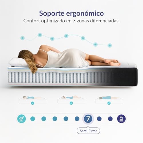 Imperial Confort Elite Anna Colchón de Muelles Ensacados con 7 Zonas de Confort, Grosor 28 cm,
